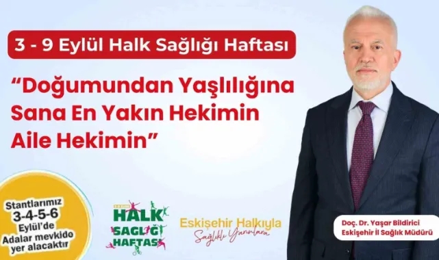 Eskişehir İl Sağlık Müdürü Doç. Dr. Yaşar Bildirici, her yıl 3-9 Eylül tarihlerinde kutlanan Halk Sağlığı Haftası'nın bu yılki temalarından biri olarak 'Sana En Yakın Hekimin, Aile Hekimin' teması belirlendiğini belirterek "Sağlıklı bireylerle sağlıklı toplumun oluşturulması vizyonu hedeflenmiştir" dedi.
